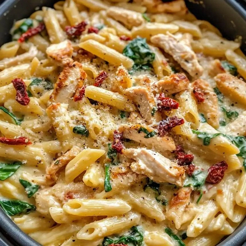 What sets this version apart from every other Tuscan pasta out there is its bold, unapologetic layering of flavors and textures. I’ve taken the classic Tuscan base and added a creamy twist that feels both indulgent and surprisingly light. The cottage cheese doesn’t just replace cream; it creates a sauce that clings to the pasta, giving each bite a luxurious mouthfeel. The sun‑dried tomatoes bring a concentrated burst of umami, while the spinach offers a pop of color and a fresh, slightly peppery undertone. The red pepper flakes add a subtle heat that cuts through the richness, keeping the dish balanced and vibrant. Most importantly, the cooking method preserves the integrity of each ingredient, so you get that crispy chicken exterior, tender pasta, and a sauce that sings.
